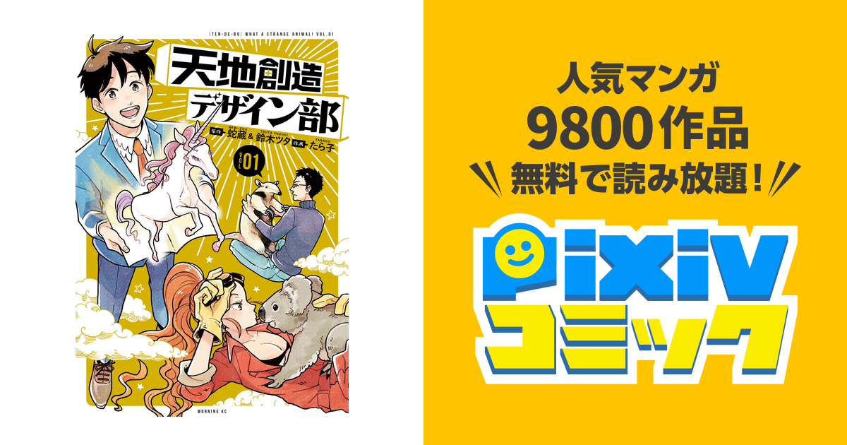 Source: news.kodansha.co.jp 感想をおくる 最新単行本 で最新刊を読む:else( 単行本一覧 書店在庫を探す 旭屋書店 紀伊國屋書店 三省堂書店 有隣堂 ネット書店で探す 電子書籍を探す 作品紹介 ヘンな生き物がいるの. 天地創造デザイン部 天地創造デザイン部 ツイート お気に入り に登録 この番組を リクエスト 作品公式 サイト 放送スケジュール 2021年1月7日(木)スタート 毎週(木)23:30 毎週(月)11:30 毎週(水)17:30 【30分×1話】 第1話. (1/16まで) 最大2,000pt ポイント獲得 1/19 【期間限定】 1/14まで 通常価格: 600pt/660円(税込) 価格: 300pt/330円(税込) 会員登録限定50%off クーポンで半額で. 注 1, heaven's design team 注 2 )は、蛇蔵、鈴木ツタ(共同原作)、たら子(作画)による日本の漫画。『月刊モーニングtwo』(講談社)にて、2017年3号から連載中 1。 天地創造デザイン部(1) 蛇蔵 鈴木ツタ たら子 30pt 還元!